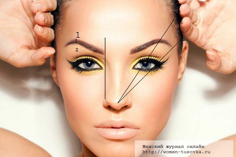 Comment déterminer le début d'un sourcil ? Pour ce faire, tracez une ligne verticale droite de la partie la plus large du nez à l'arête du nez. Voir la photo ci-dessous.