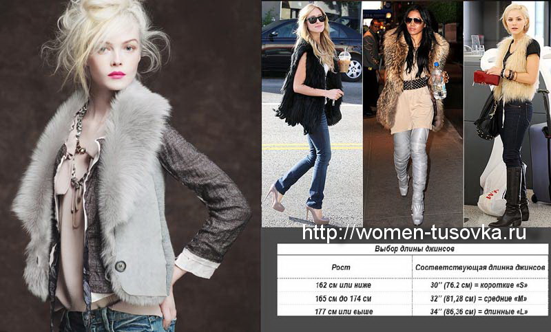 - La taille basse du jean allonge visuellement la taille et raccourcit les jambes. Combinez un jean avec une taille basse, de préférence avec un talon haut pour restituer les proportions de la silhouette.